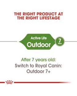 Εάν η γάτα σας είναι εν μέρει υπαίθρια και ζεί ενεργό τρόπο ζωής, είναι σημαντικό να διασφαλίσετε ότι η διατροφή της υποστηρίζει αποτελεσματικά τις φυσικές δραστηριότητες της. Το ROYAL CANIN® Outdoor έχει υψηλή περιεκτικότητα σε ενέργεια και θερμίδες για να εξασφαλίσει ότι ικανοποιεί τις διατροφικές απαιτήσεις για γάτες με ενεργό , υπαίθριο τρόπο ζωής. Έχοντας μια δίαιτα υψηλής ενέργειας θα βοηθήσει επίσης τη γάτα σας να αντιμετωπίσει τις καιρικές αλλαγές καθ 'όλη τη διάρκεια των εποχών. Αναπτύχθηκε με μια ειδική φόρμουλα διατροφικών αντιοξειδωτικών, το ROYAL CANIN® Outdoor βοηθά στην υποστήριξη του ανοσοποιητικού συστήματος της γάτας σας. Το ROYAL CANIN® Outdoor περιέχει ένα συνδυασμό ωμέγα-3 λιπαρών οξέων (EPA και DHA) για να υποστηρίξει τις αρθρώσεις της γάτας σας.