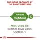 Οι γάτες με πρόσβαση σε εξωτερικούς χώρους μπορεί να έχουν ένα υψηλότερο επίπεδο δραστηριότητας και συνεπώς να χρειάζονται μια διατροφή υψηλότερης ενέργειας. Πρέπει επίσης να υπομείνουν διακυμάνσεις στην εξωτερική θερμοκρασία. Το Outdoor έχει υψηλό ενεργειακό περιεχόμενο για να καλύψει τις ανάγκες των δραστήριων γατών.