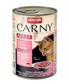 Η σειρά Carny της Animonda για γάτες, αποτελείται από κονσέρβες των 200gr και 400gr αντίστοιχα, από τα πρακτικά φακελάκια Exotic για πιο ιδιαίτερες γεύσεις, καθώς και από τη μοναδική σειρά Οcean με βάση τα θαλασσινά. Αποτελεί στο σύνολο της γκάμας της, μια εύγευστη πλήρης υγρή τροφή από επιλεγμένα κρέατα υψηλής ποιότητας σε μορφή pate. Απευθύνεται σε όλες τις φυλές και ηλικίες με διαφορετικές διατροφικές ανάγκες που μπορεί να εμφανίζουν οι γάτες ανάλογα με το στάδιο της ζωής τους. Η μοναδική γευστικότητα της σειράς και η μεγάλη ποικιλία γεύσεων, καλύπτει ακόμη και τις πιο απαιτητικές γάτες.