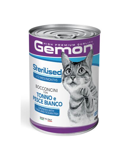 Το Gemon Sterilized Cat Chunkies with Tuna and Ocean Fish είναι μια πλήρης τροφή για κατοικίδια για στειρωμένες ενήλικες γάτες, σχεδιασμένη να παρέχει όλα τα απαραίτητα θρεπτικά συστατικά για την καθημερινή ζωντάνια των τετράποδων φίλων μας. Η GEMON HIGH PREMIUM QUALITY είναι μια σειρά ολοκληρωμένων τροφών για κατοικίδια με ποιοτικά συστατικά, επιλεγμένα για να καλύπτουν τις διατροφικές ανάγκες των ζώων σας. Εξαιρετικά εύγευστη συνταγή, προσαρμοσμένη στις διαφορετικές ηλικίες και τον τρόπο ζωής του ζώου. Χωρίς προσθήκη τεχνητών χρωστικών και συντηρητικών. Κατασκευασμένο στην Ιταλία και χωρίς τεστ σκληρότητας.