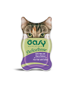 Oasy Delicatesse Pate Adult Γαλοπούλα 85gr Εάν η γάτας σας προτιμάει τις απαλές υφές, τότε τα Fine Pate με Γαλοπούλα είναι η επιλογή σας! Με σύνθεση που περιλαμβάνει μεγάλη ποσότητα κρέατος και φυσικά συστατικά σε μια πολύ μαλακή υφή, είναι ένα υπέροχο γεύμα για καθημερινή απόλαυση....