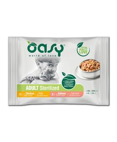 Τροφή γάτας φακελάκι OASY ADULT STERILISED chicken 85gr  Τα Oasy Φακελάκια σε σάλτσα είναι μια σειρά από πλήρης τροφή για γάτες που παρασκευάζεται με φρέσκο κρέας και φυσικά συστατικά για υψηλή γευστικότητα και κάλυψη κάθε ιδιαίτερης ανάγκης της γάτας σας. Διαθέσιμη σε 8 νόστιμες...