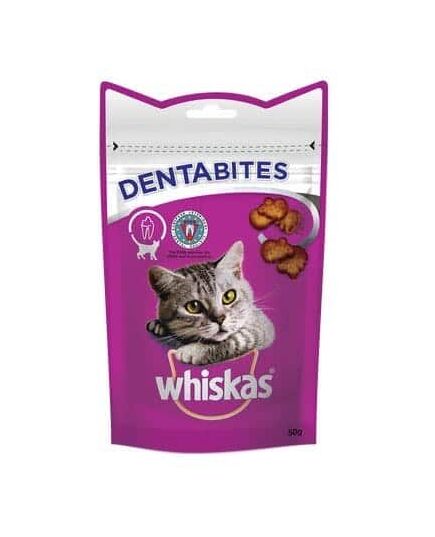 Τόσο υγιεινή μπορεί να είναι η επιβράβευση! Το σνακ Whiskas Dentabites αποτελεί μια υγιεινή λιχουδιά οδοντικής φροντίδας για όλες τις γάτες. Χάρη στην ειδική υφή του, το εκλεκτό σνακ καθαρίζει τα δόντια μηχανικά και μειώνει έτσι το σχηματισμό οδοντικής πέτρας, γεγονός που είναι επιστημονικώς αποδεδειγμένο και αναγνωρισμένο από το Veterinary Oral Health Council (VOHC - Κτηνιατρικό Συμβούλιο για την Οδοντιατρική Υγεία). Έτσι, μπορείτε να επιβραβεύετε τη γάτα σας με υγιεινό τρόπο, ή να της προσφέρετε απλά ένα μικρό σνακ. Επιπλέον, τα σνακ παρασκευάζονται με νόστιμο κρέας και είναι εξαιρετικά γευστικά.