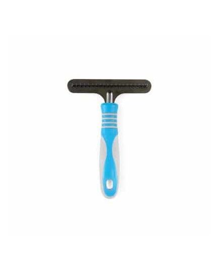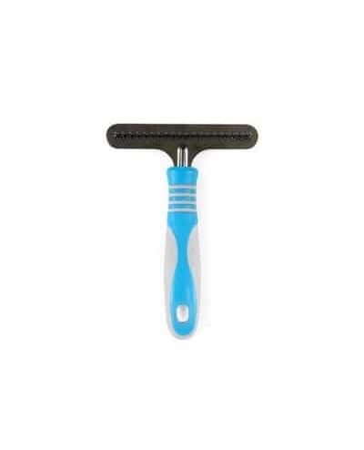 To use the rake, gently brush the hair in the direction of the fur growth. The teeth of the rake will slide into the undercoat, pulling away loose hairs. To ensure your dog has an enjoyable grooming session, start gently. If your dog enjoys grooming, more pressure can be applied to remove more fur. Pause or end the grooming session if your dog becomes agitated.