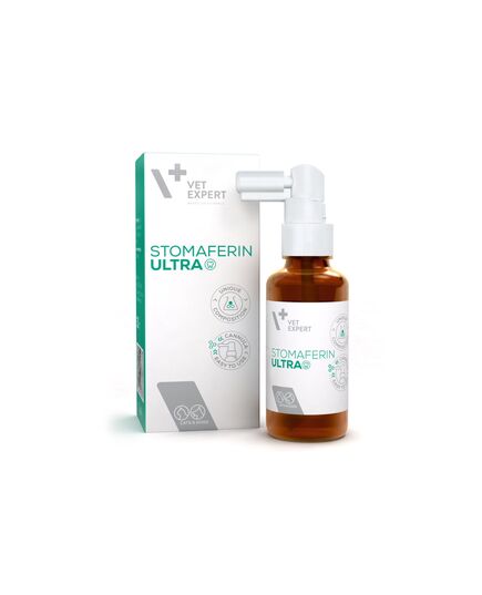 Οδηγίες χρήσης: εφαρμόστε απ` ευθείας στο στοματικό βλεννογόνο ζώων που έχουν τάση να δημιουργούν πλάκα και πέτρα. Χάρη στην ειδική σύνθεση των ενεργών συστατικών του, το Stomaferin αποτρέπει την προσκόλληση των βακτηρίων στην οδοντική επιφάνεια, προστατεύοντας από την ανάπτυξη και τον αποικισμό τους, όπως επίσης εξουδετερώνει και τη δυσάρεστη οσμή του στόματος. Βοηθά στη διατήρηση της φυσιολογικής χλωρίδας του στόματος και μειώνει την ανάπτυξη πέτρας μετά την μηχανική αφαίρεση της. Προστατεύει και βοηθά στην αναγέννηση των μεμβρανών του στοματικού βλεννογόνου, ιδιαίτερα μετά από οδοντικές θεραπείες.