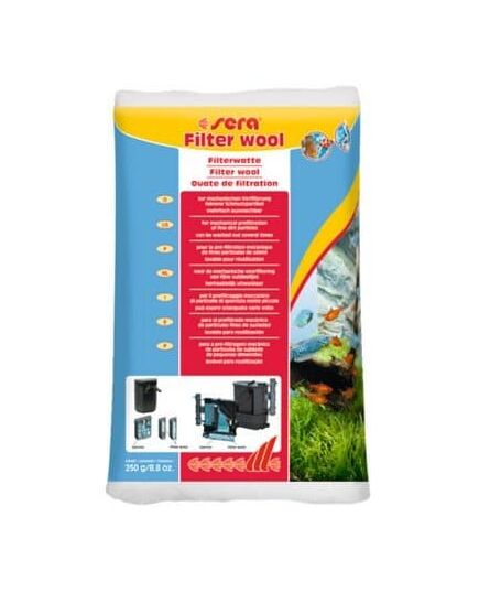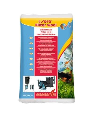sera filter wool για μηχανικό προ-φιλτράρισμα, κατασκευασμένο από σταθερές ίνες που παρακρατούν τα μικρότερα σωματίδια βρωμιάς για μεγαλύτερο χρονικό διάστημα χωρίς να κολλάνε μεταξύ τους ή να διαλύονται. Μπορεί να πλυθεί για καθάρισμα αρκετές φορές. Είναι κατάλληλο για όλα τα φίλτρα.