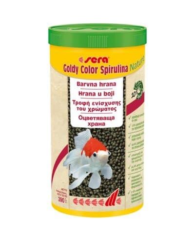 Το sera Goldy Color Spirulina Nature είναι η τροφή ενίσχυσης χρώματος που αποτελείται από απαλά παρασκευασμένους κόκκους χωρίς βαφές και συντηρητικά για μεγαλύτερα χρυσόψαρα, τις φανταχτερές παραλλαγές τους και άλλα ψάρια κρύου νερού.