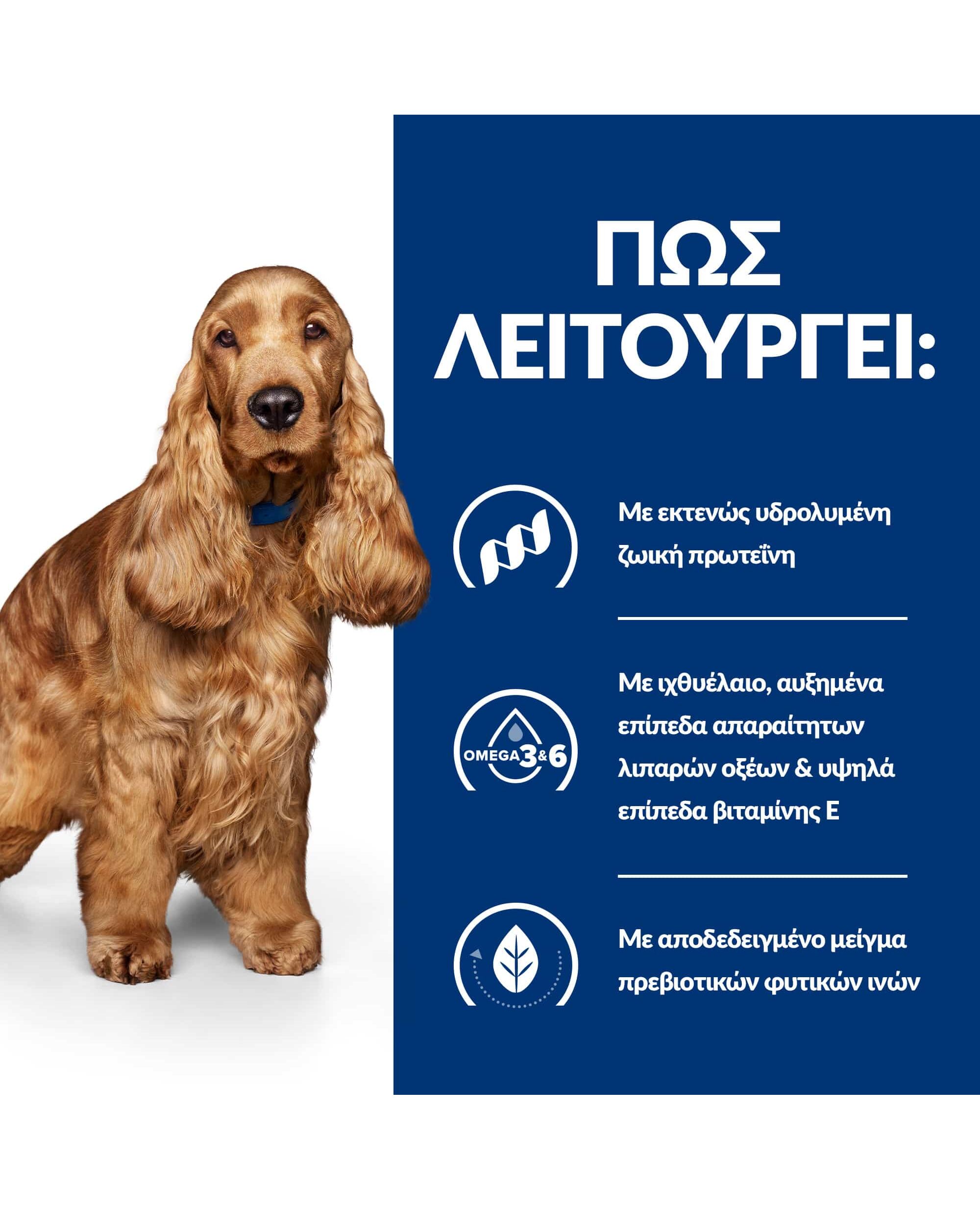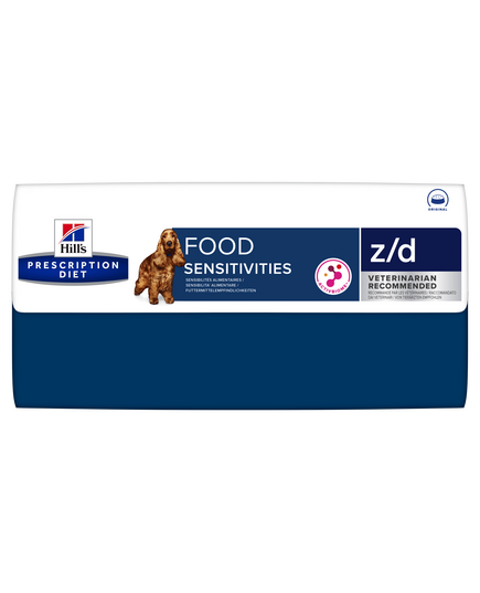 Οι διατροφολόγοι και οι κτηνίατροι της Hill ανέπτυξαν κλινική διατροφή Prescription Diet® z/d® ειδικά σχεδιασμένη για να υποστηρίζει το δέρμα και τις ευαισθησίες του σκύλου σας στα τρόφιμα. Στην πραγματικότητα, το z/d είναι κλινικά αποδεδειγμένη διατροφή που βοηθά στην αποφυγή ανεπιθύμητων αντιδράσεων στα τρόφιμα.
