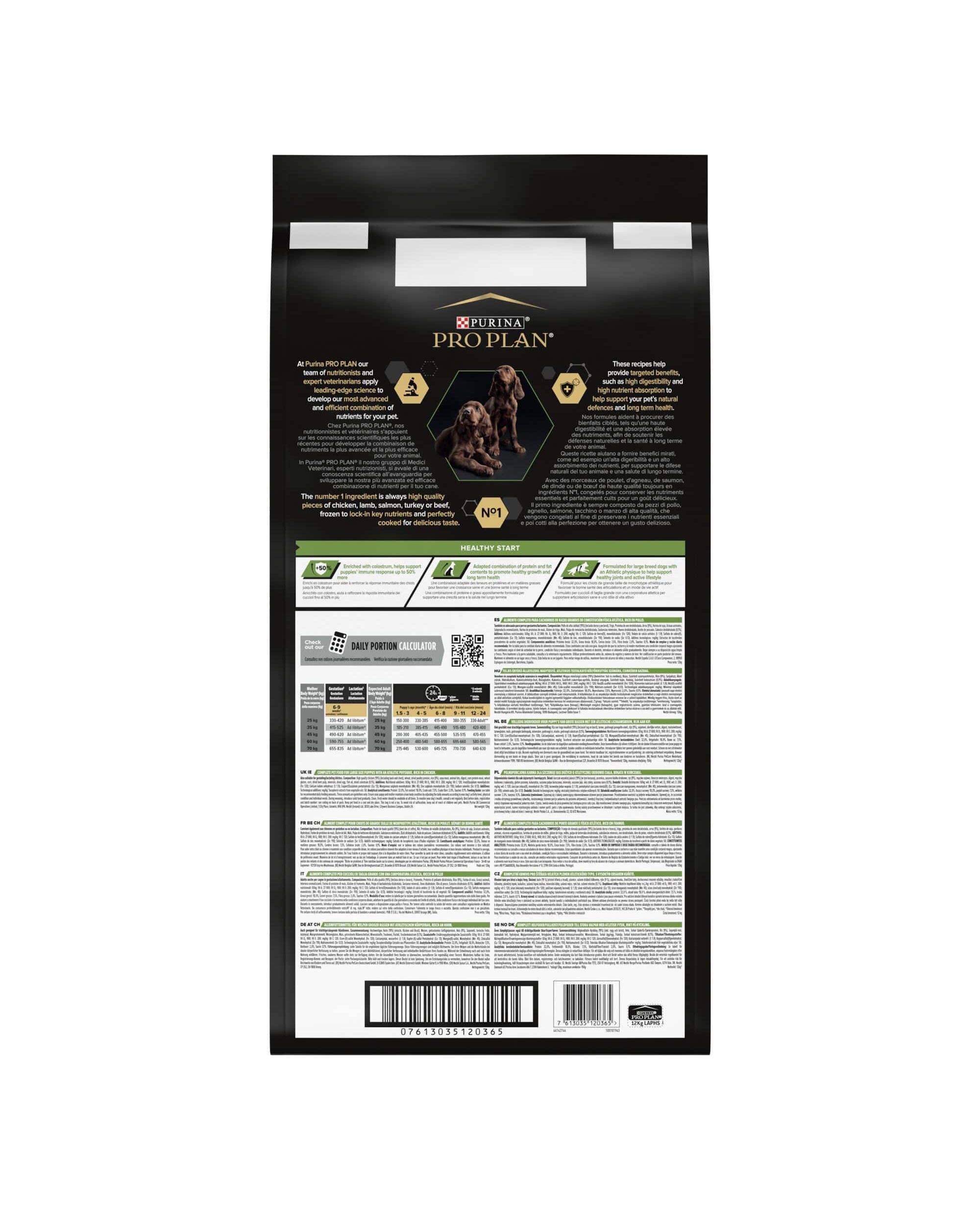 Ο πρώτος χρόνος της ζωής του κουταβιού σας (ή τα δύο πρώτα χρόνια για κουτάβια μεγαλόσωμων φυλών) είναι πολύ σημαντικός για την μακροχρόνια υγεία του. Οι κτηνίατροι και διατροφολόγοι της Purina® έχουν αναπτύξει την Purina PRO PLAN® PUPPY Healthy Start για να βοηθήσουν την εδυνάμωση της φυσικής άμυνας των κουταβιών. Με ειδικό συστατικό το πρωτόγαλα - το πρώτο μητρικό γάλα πλούσιο σε αντισώματα - βοηθά την ενδυνάμωση της φυσικής άμυνας των κουταβιών για την αντιμετώπιση των καθημερινών προκλήσεων. Η PRO PLAN LARGE PUPPY ATHLETIC παρέχει την απαραίτητη ενέργεια για τον έντονο μεταβολισμό του κουταβιού.