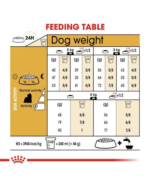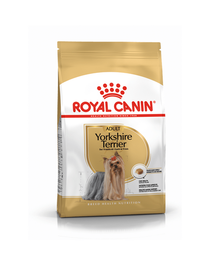 Επειδή κάθε φυλή έχει τις δικές της ειδικές απαιτήσεις, η σειρά Breed Health Nutrition της ROYAL CANIN® ικανοποιεί τις διατροφικές ανάγκες των σκύλων διαφορετικών φυλών για να υποστηρίξει τη βέλτιστη υγεία. Για τους σκύλους Yorkshire Terriers ηλικίας άνω των 10 μηνών, ο ROYAL CANIN® Yorkshire Terrier Adult είναι ειδικά σχεδιασμένο τισ ανάγκεσ τους. Περιλαμβάνει για την υποστήριξη του τριχώματος τα λιπαρά ωμέγα-6 λιπαρά οξέα (EPA & DHA), το έλαιο μποράγου και το biotin.Το ROYAL CANIN® Yorkshire Terrier Adult ικανοποιεί ακόμα και τις πιο απαιτητικές ορέξεις, χάρη σε ένα συνδυασμό εξαιρετικών γεύσεων που ο σκύλος σας δεν θα μπορέσει να αντισταθεί! Η καλή στοματική υγιεινή αποτελεί σημαντικό παράγοντα για την επιλογή της τροφής. Το ROYAL CANIN® Yorkshire Terrier Adult βοηθάει στην επιβράδυνση του σχηματισμού πέτρας μέσω της ακριβούς συμπερίληψης των χηλικών συμπλοκών ασβεστίου. Για να ικανοποιήσει τις ατομικές προτιμήσεις κάθε σκύλου, το ROYAL CANIN® Yorkshire Terrier Adult είναι επίσης διαθέσιμο σε υγρή τροφή σε ένα μαλακό και νόστιμο πατέ. Αν σκέφτεστε να κάνετε μεικτή σίτιση, ακολουθήστε απλώς τις οδηγίες μας σχετικά με τη διατροφή του για να διασφαλίσετε ότι ο σκύλος σας λαμβάνει μια ακριβή ποσότητα υγρής και ξηράς τροφής για βέλτιστο όφελος