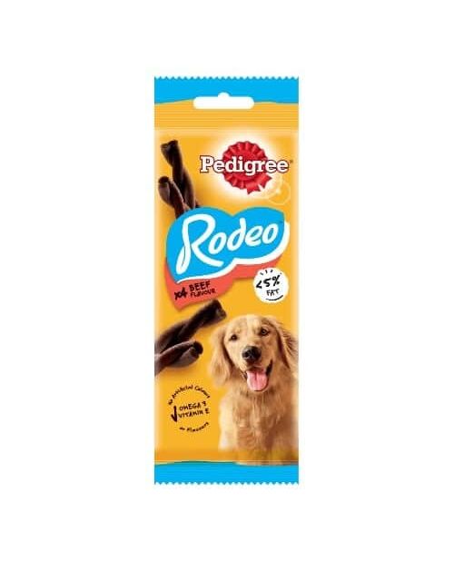 Για ξεχωριστές στιγμές με το σκύλο σας κεράστε τον ένα Pedigree® Rodeo®, το νόστιμο στριφτό στικ με μοσχάρι που κάνει τους σκύλους να κουνάνε την ουρά τους από χαρά! Απολαυστικά νόστιμο, με Ωμέγα 3, ασβέστιο, βιταμίνες και μεταλλικά άλατα για να είστε σίγουροι ότι το νόστιμο είναι και θρεπτικό!