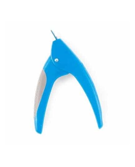 To use, ensure your dog is calm and still. If your dog is new to having their claws trimmed, it may help to have another person present to hold your dog. Hold the dog's toe firmly, keeping it still. Place the guillotine clipper over the very end of the claw, and close it to remove the end of the claw.